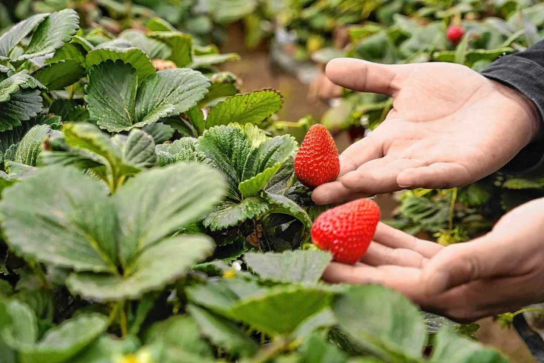 Las manos de tres mujeres que trabajan en el proyecto de cultivo semihidropónico de frutillas les ha permitido obtener las primeras cosechas que son volcadas al mercado local. La iniciativa está enclavada en el vivero municipal de Plaza Huincul y cuentan con el apoyo económico y asesoramiento técnico del Centro PyMe junto al gobierno local.