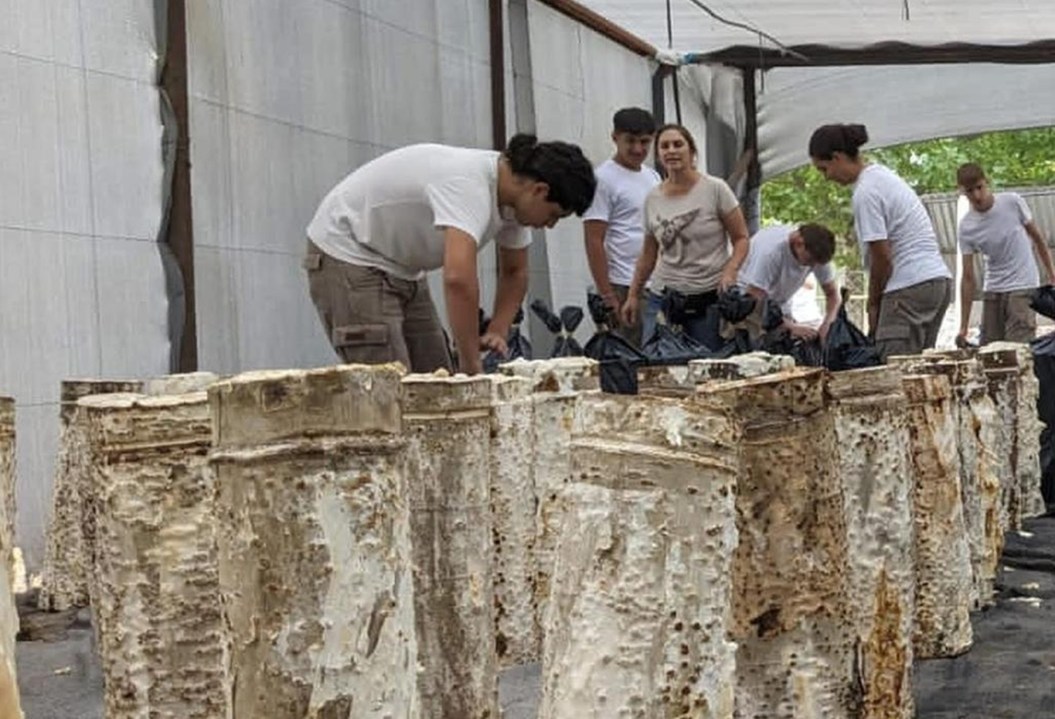 Producción de hongos sobre troncos de álamos, otra actividad que aprenden los estudiantes de la EAAVE.