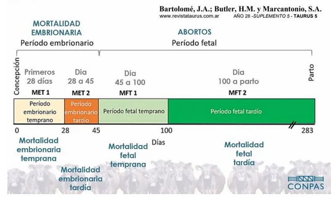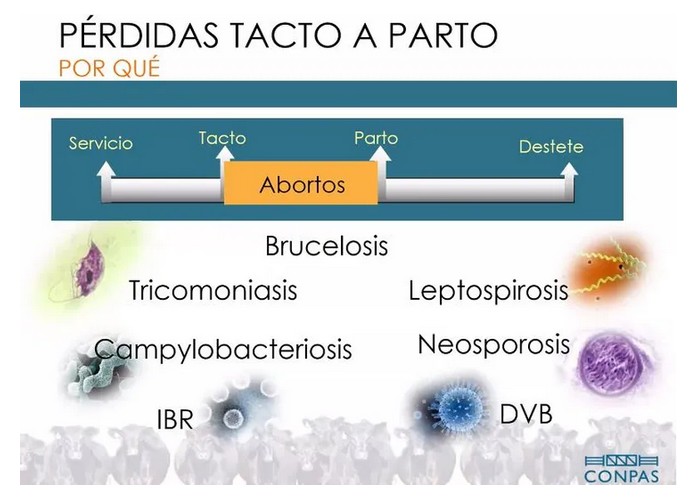 Pueden ocurrir por mortalidad embrionaria (hasta el día 45), detectada como “vaca vacía” al tacto; período fetal temprano (día 45 a 100), por lo general causada por venéreas como Trichomoniasis o Campylobacter; y período fetal tardío (>100 días), que generalmente está asociada a agentes infecciosos (brucelosis, Neospora, Leptospirosis, DVB/IBR, etcétera).