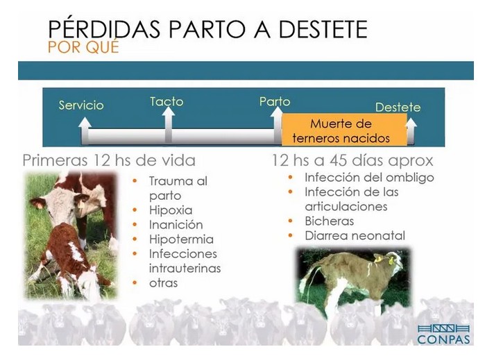 Las mermas tacto-parto (el período fetal) es la etapa más difícil de diagnosticar si no hay seguimiento profesional. Las causas se dividen principalmente en mortandad de la madre: incidencias de hipomagnesemia o intoxicaciones (por ejemplo: hongos en maíces diferidos) y abortos, los cuales deben ser clasificados para un correcto diagnóstico etiológico.