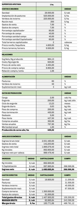 También es cierto que los parámetros de producción que figuran en los cuadros pueden variar de un productor a otro para bien o para mal. Eso va depender de la eficiencia de manejo, producción y negociación de cada uno.