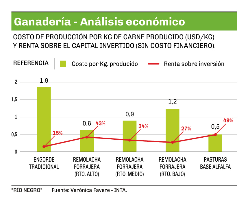 La incorporación del cultivo de remolacha forrajera en forma conjunta con pasturas base alfalfa es el eje para una producción ganadera bovina rentable en lo económico, sustentable desde el punto de vista ambiental y generadora de un bienestar animal óptimo. A futuro, el sistema de remolacha forrajera para pastoreo directo puede transformar la rentabilidad y la productividad de carne en los valles irrigados de la Norpatagonia.