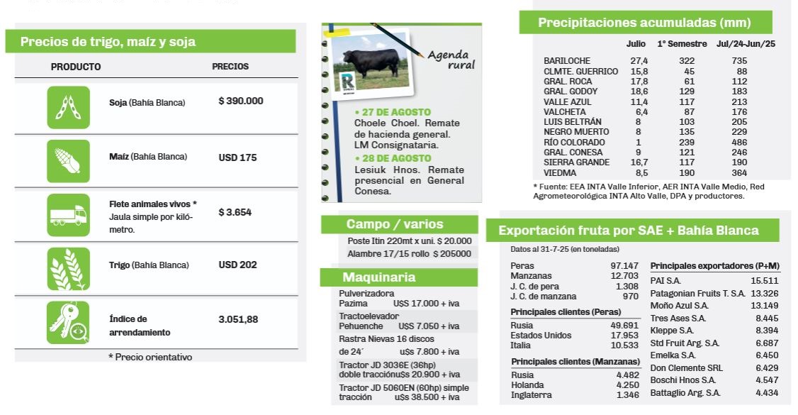 Río Negro Rural te brinda la información necesaria para que estés actualizado con los últimos datos de la actividad frutícola y agropecuaria de Neuquén y Río Negro.