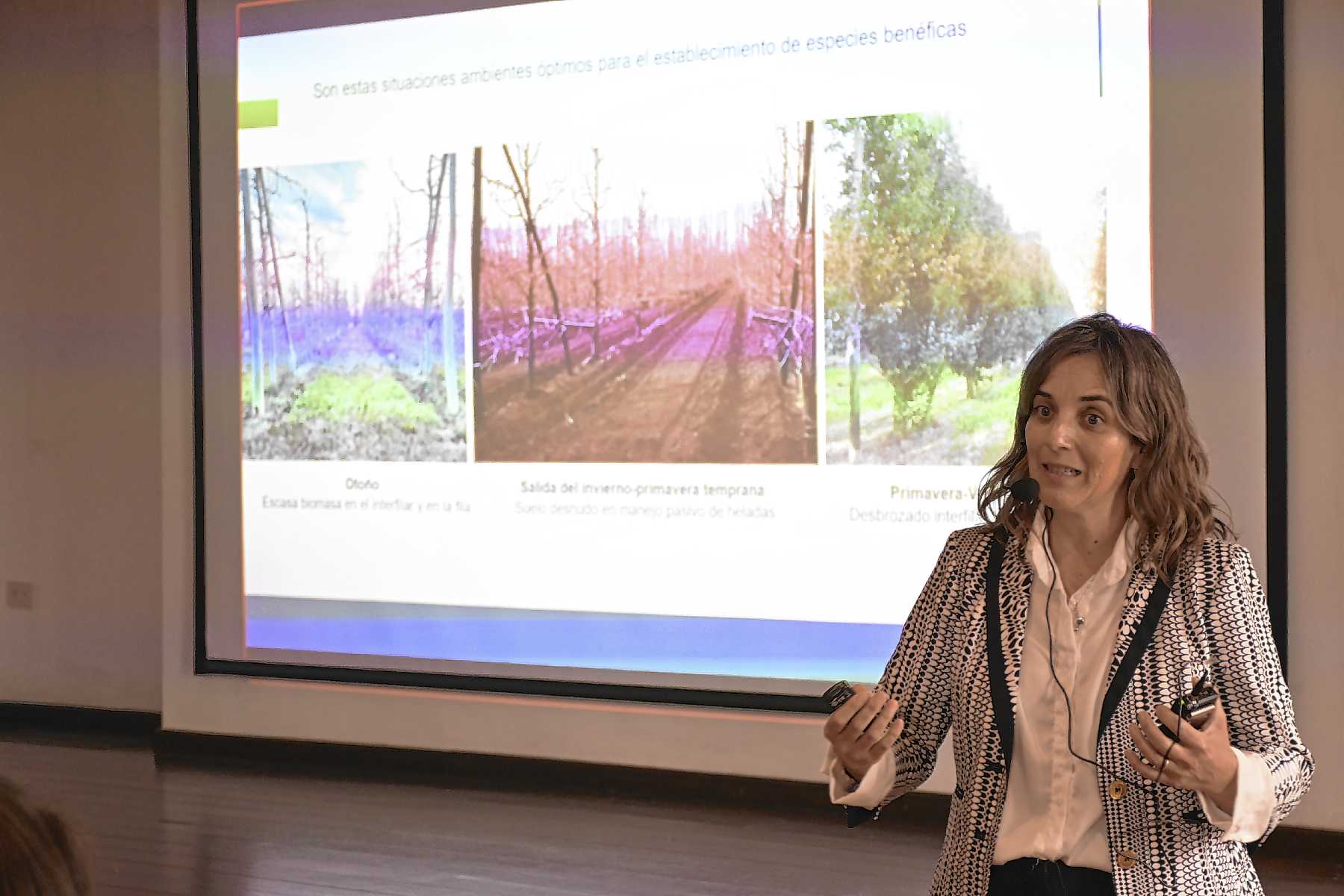Las investigaciones regionales en gestión de la biodiversidad y control biológico como herramientas de la fruticultura regenerativa, fueron abordados por Silvina Garrido, investigadora de INTA Alto Valle.