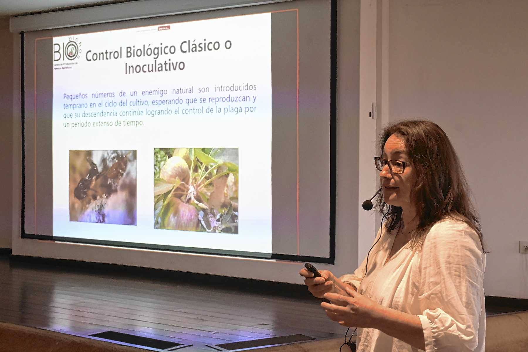 Esta jornada contó además con la participación Marta Rodríguez, investigadora y socio fundadora de BioBichos Ltda, una empresa chilena con más de 14 años de investigación y desarrollo en producción de insectos benéficos para el control de plagas en diversos cultivos como manzanos, nogales, vid y berries. Su charla se centró en el estado actual y la potencialidad del control biológico en Chile, los puntos en común entre ambos países en cuanto a desafíos actuales y el potencial de los bioinsumos nativos.
