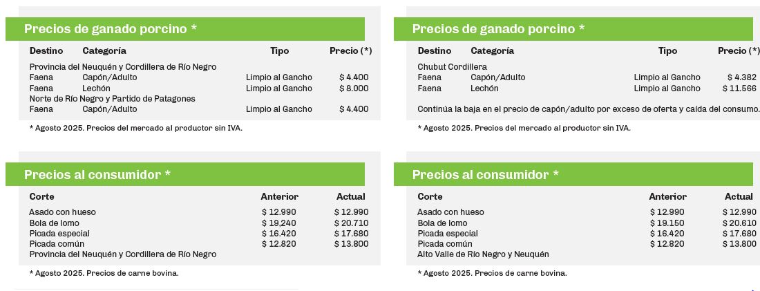 Esta semana vamos con precios de hacienda bovina, ovina y porcina en el mercado, valores relevados en distintas zonas de la Patagonia.
