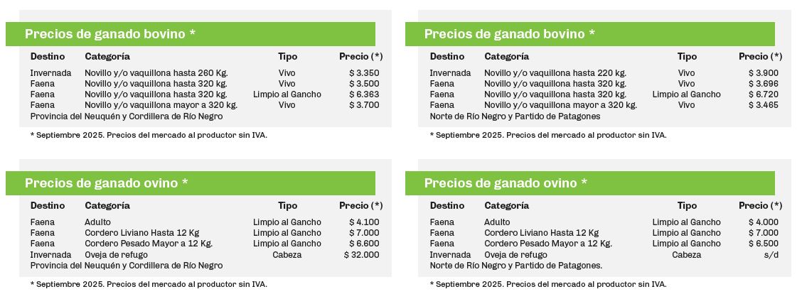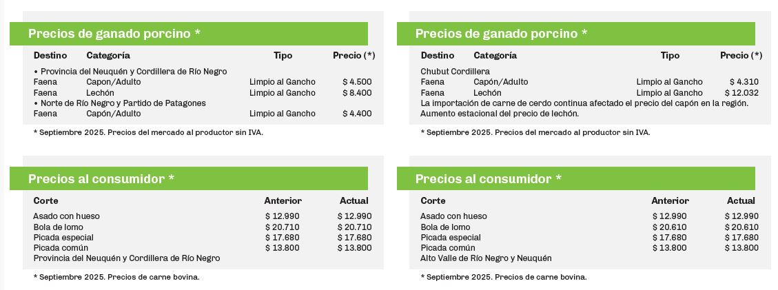 Esta semana están disponibles los precios de la hacienda bovina, ovina y porcina en el mercado, con valores relevados en distintas zonas productivas de la Patagonia.