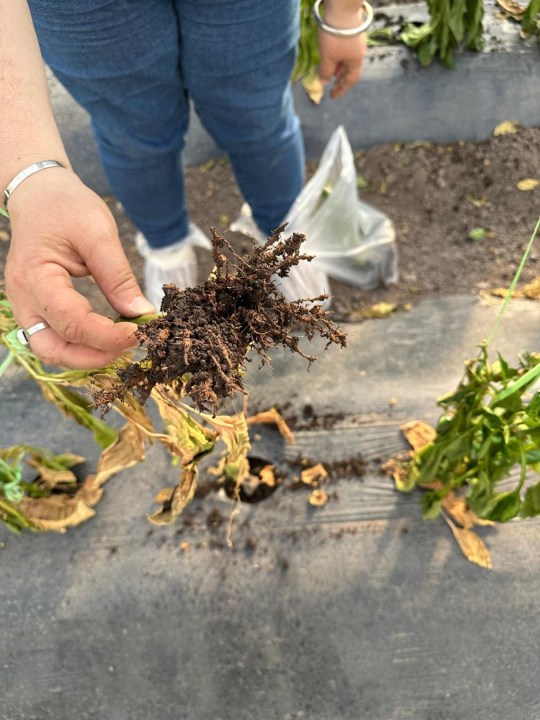 Además, los nematodos pueden sobrevivir muchos años en el suelo, lo que dificulta enormemente su erradicación una vez instalados. En casos severos, las pérdidas de rendimiento pueden llegar hasta el 70%, e incluso provocar la muerte total de las plantas en sectores completos del invernadero. “Hemos visto manchones enteros donde las plantas estaban directamente muertas”, relata la especialista.