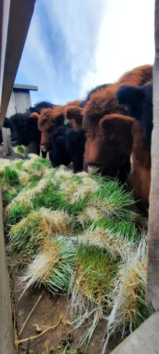 En muchos casos el forraje hidropónico reemplaza parte del rollo, que puede resultar oneroso y a veces de mala calidad en años secos. De esta manera el productor puede contar con una cosecha fresca y uniforme todos los días del año.