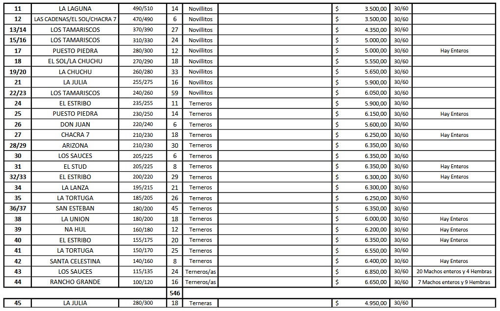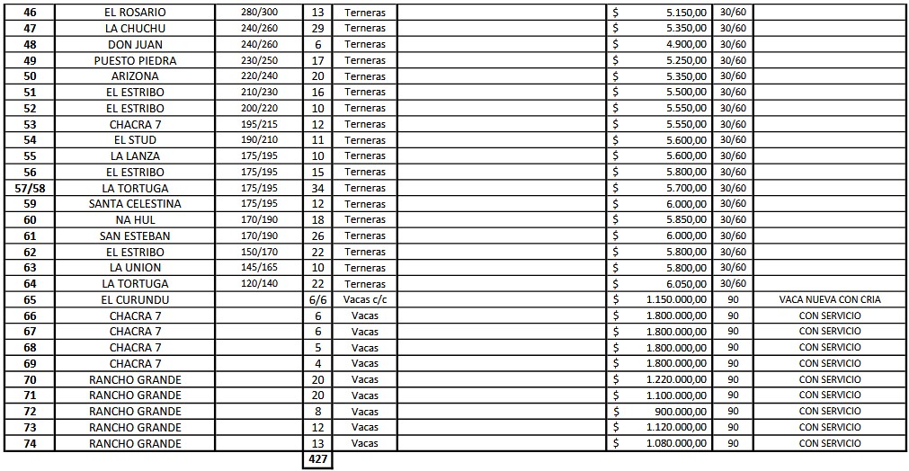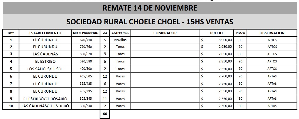 A continuación, todos los precios alcanzados en el remate de hoy en la Sociedad Rural de Choele Choel: