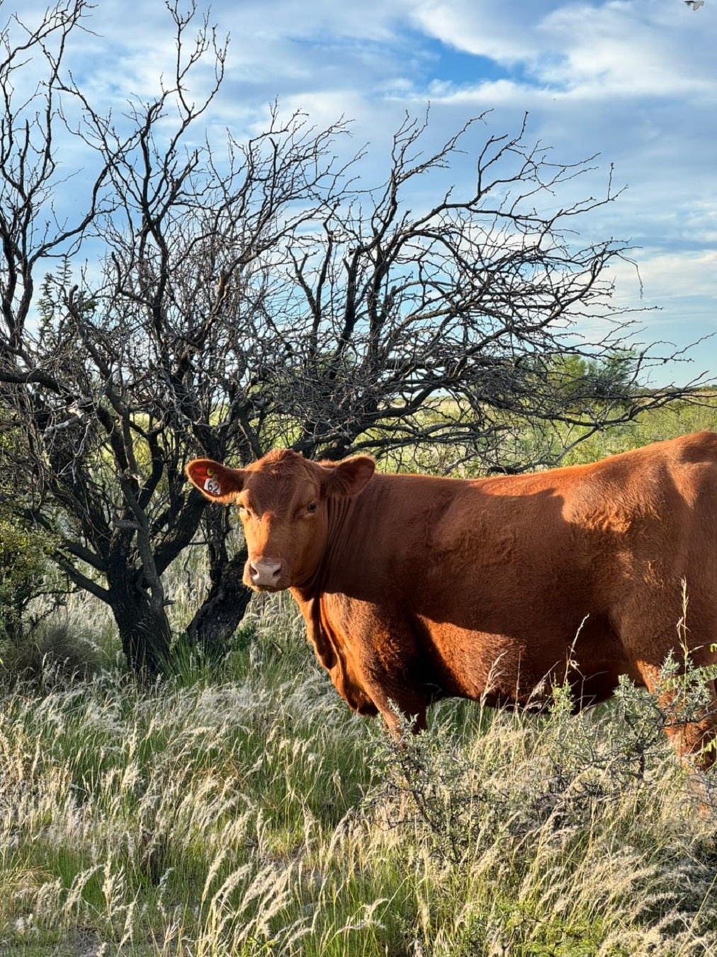 Maite Giretti, de Cabaña Rodeo Pampa, tomó esta foto del campo de cría en el secano: animal en buen estado y pasto abundante.