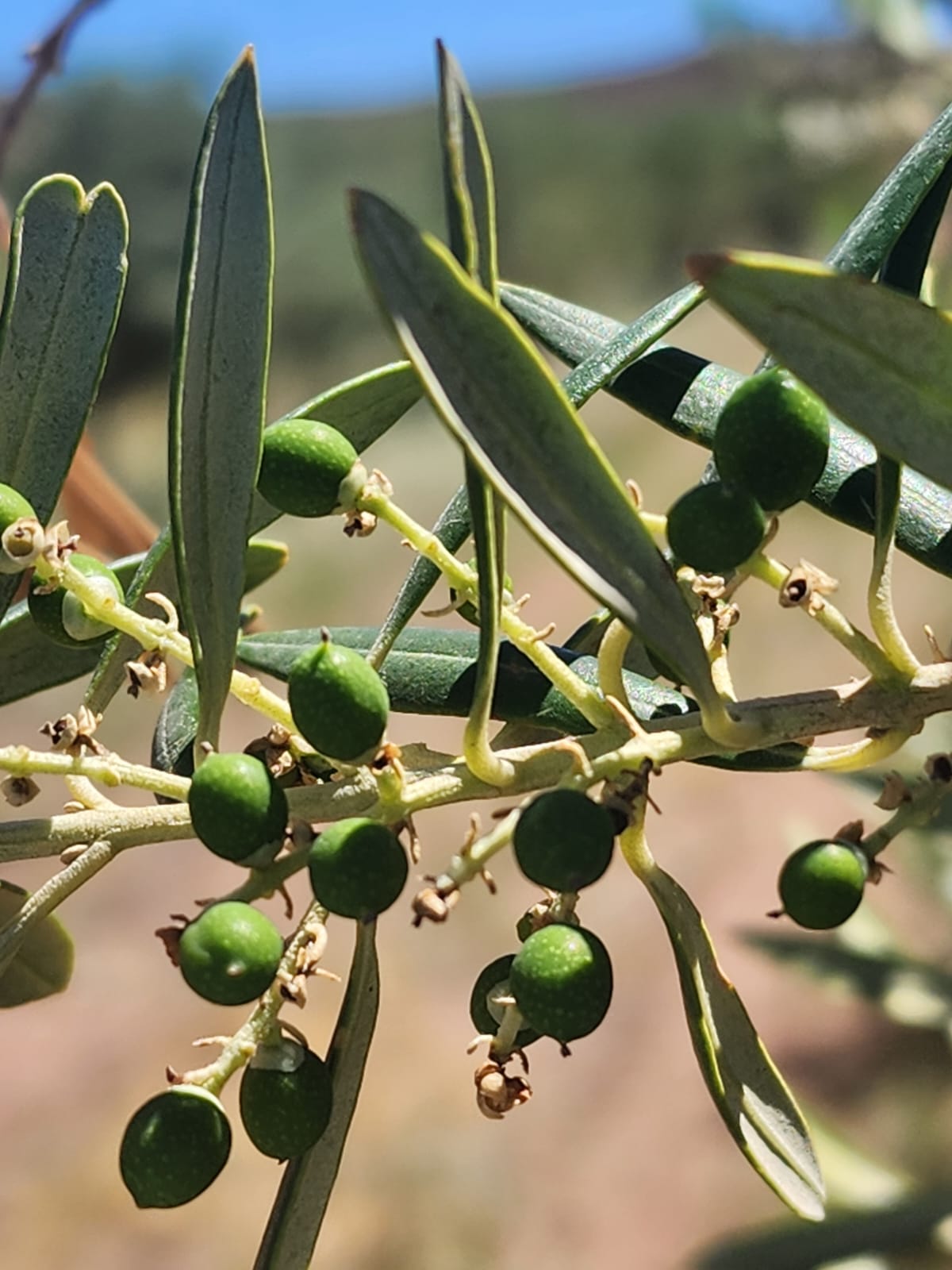 Giulio Retamal, de Olivares del Neuquén, retrató los primeros frutos producidos por olivos plantados en el año 2022.