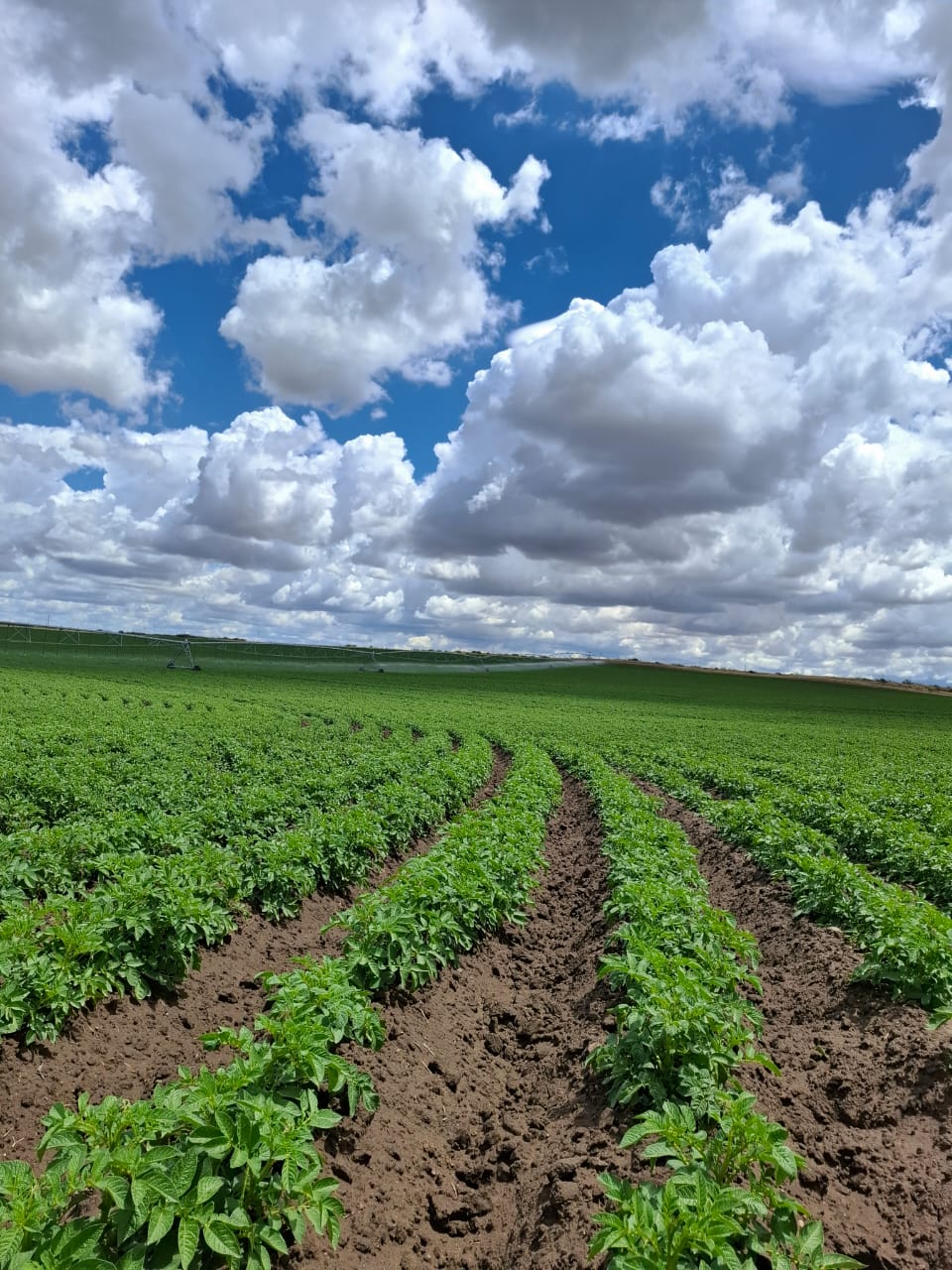 Giovanni Cantera, del campo El Carbón, muestra esta plantación de papas sembradas en octubre y regadas por pivote.