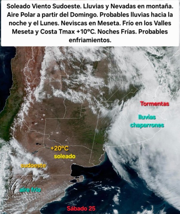 «Hay que ver cómo estamos con lluvia, con viento, para ir evaluando esa noche en particular, después ya para el 29 hay viento norte y eso atenúa efectos del frío. Hoy el sistema tiene bastante variabilidad, vamos a ver cómo ingresa ese aire polar«, sostuvo Frasseto.