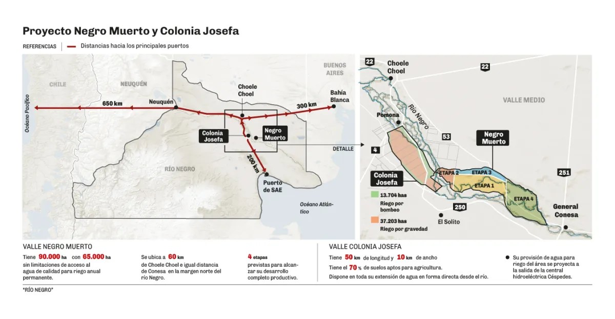 Como publicó Diario Río Negro el pasado 7 de diciembre (https://www.rionegro.com.ar/rural/rio-negro-prepara-obras-clave-para-el-desarrollo-agricola-de-negro-muerto-y-colonia-josefa/) un trabajo conjunto entre la Secretaría de Agricultura, que dirige Lucio Reinoso, y el Departamento Provincial de Aguas, a cargo de Gastón Renda, trazó una hoja de ruta sobre las obras que se necesitan para que estas áreas productivas desarrollen todo su poderío.