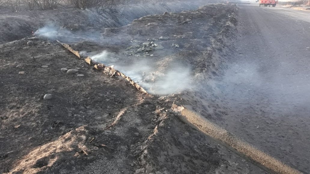Ruta 65: incendio cerca del INTA viejo provocó la caída de cableado