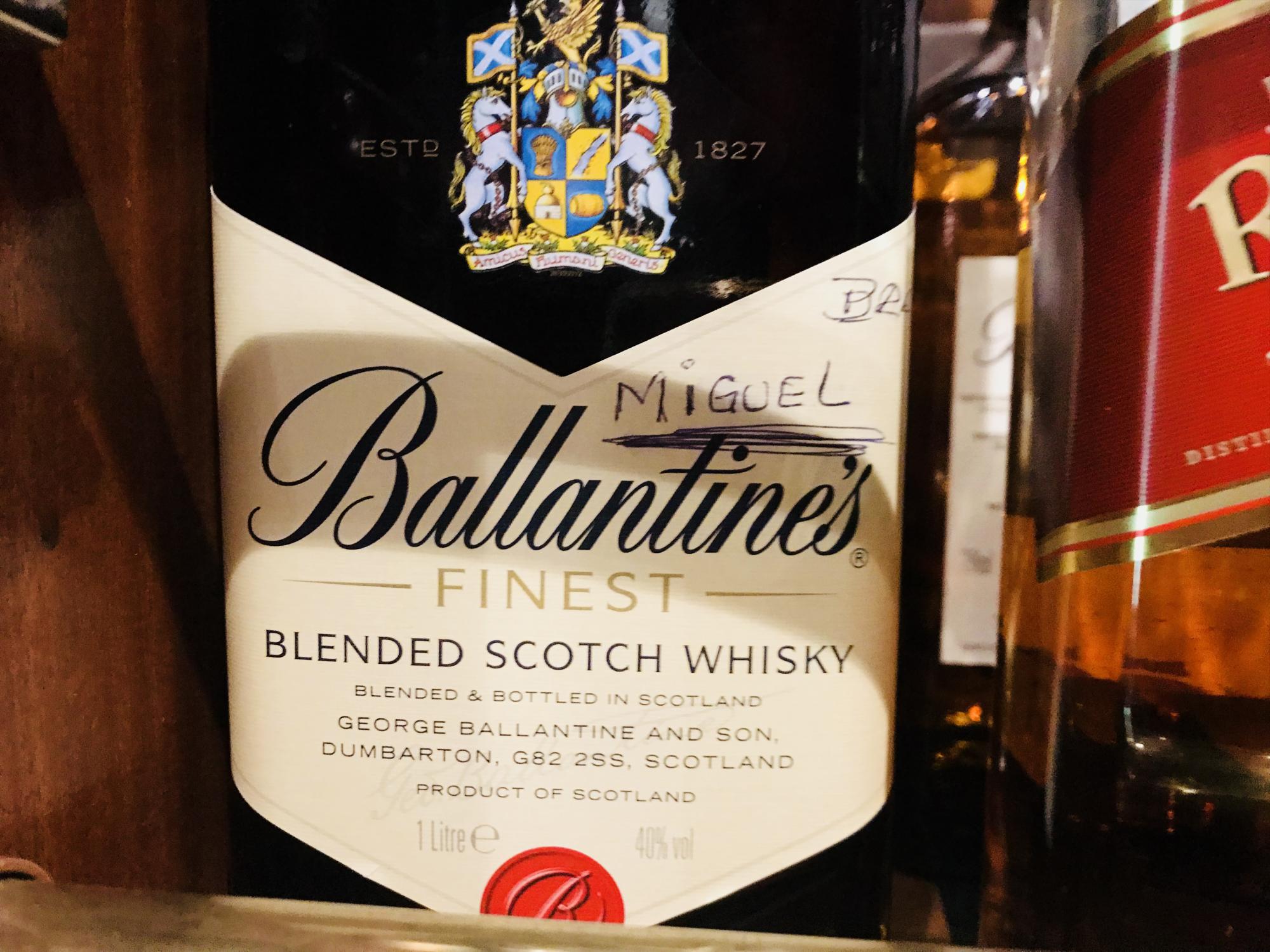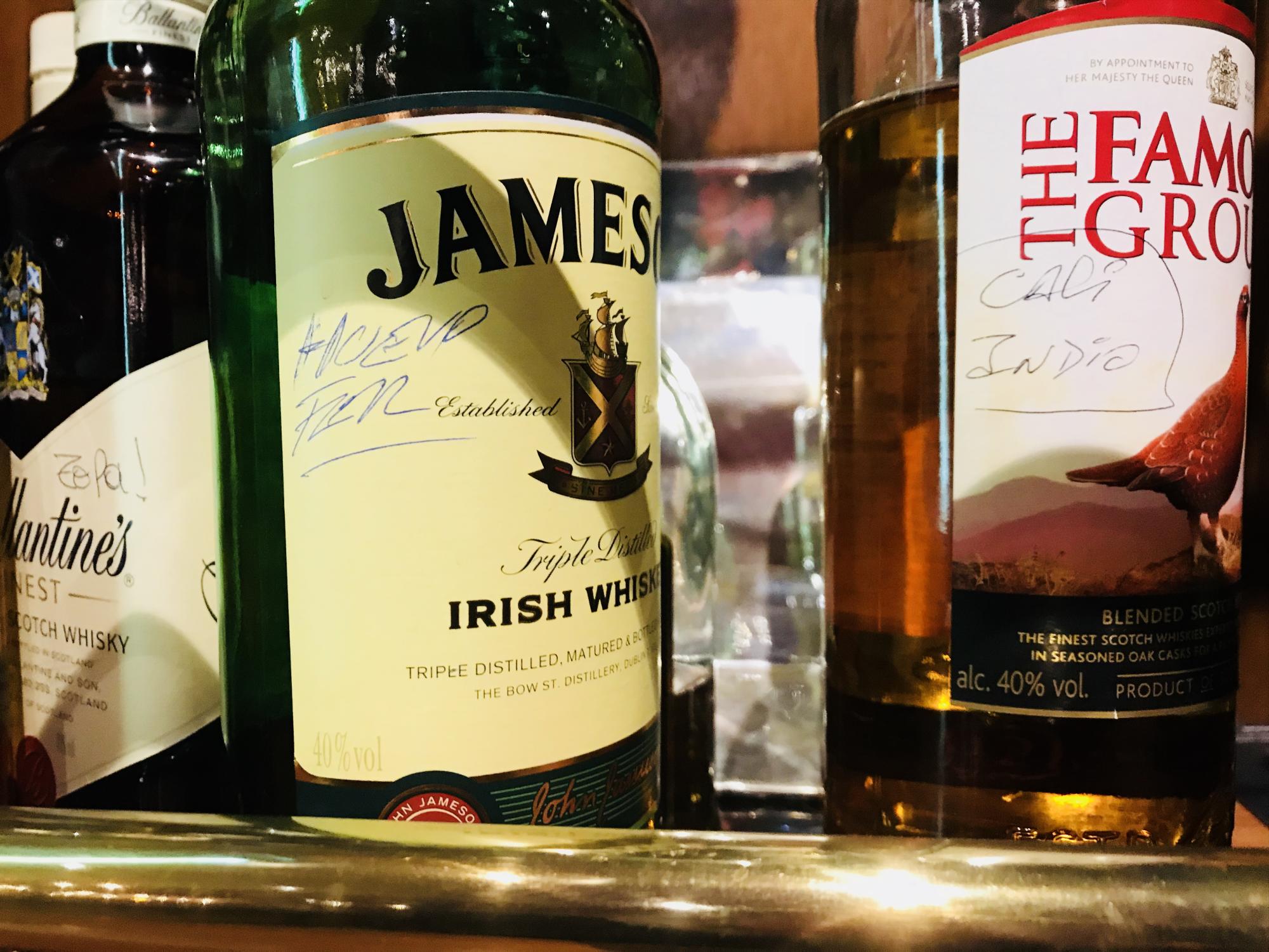 En un giro de cabeza, mientras leía un libro de Fabián Casas detecté una vitrina con algunas botellas de whisky, al lado de la cava de vinos, sobre el pasillo que va a los baños. Las botellas en cuestión tenían escritos en lapicera y con una caligrafía que iba cambiando diferentes nombres de personas. Supuse que el rótulo identificaba a los dueños. Pregunté y me enteré que allí funciona el divertido Club Del Whisky. Luego mi amiga Soledad, que frecuenta el bar desde siempre, me lo confirmó.