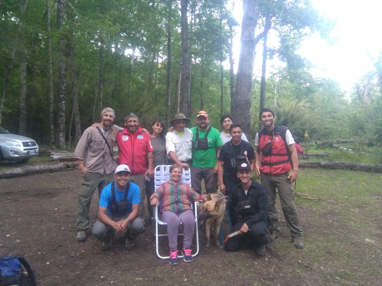 El abrazo con sus familiares conmovió a los brigadistas, quienes retrataron el momento. Luego, fue el turno del control de salud, que fue realizado por la enfermera del grupo, y que Elizabeth pasó sin problemas, por lo que la familia decidió continuar sus vacaciones. Pero antes de despedirse, la mujer posó con sus rescatistas de dos patas y con el de cuatro.