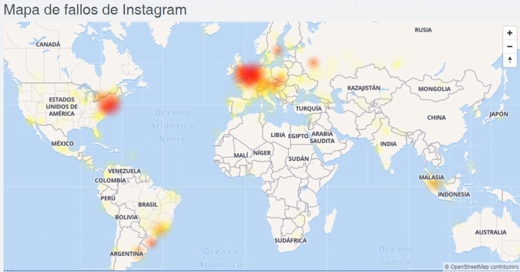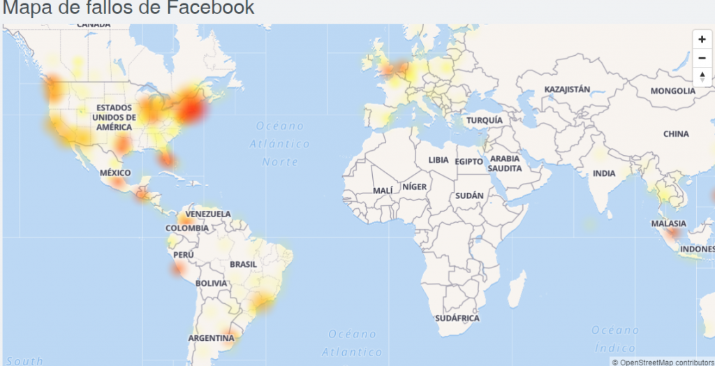 El portal DownDetector, un sitio que monitorea las interrupciones de diferentes plataformas, mostró que ambos servicios empezaron a reportar fallas a partir de las 11:30 de la Argentina. El mapa de caída de Facebook revela que afecta a gran parte de América del Norte, algo de América del Sur, Europa y Asia.