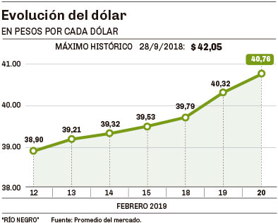 Alcanzó los $ 41,45. Retrocedió a $ 40,76 después de que el Banco Central volvió a subir la tasa de política monetaria para contener la escalada. La moneda norteamericana anotó así su sexta suba consecutiva. Para algunos analistas, se está acomodando a la inflación que fue de casi 3% en enero.
