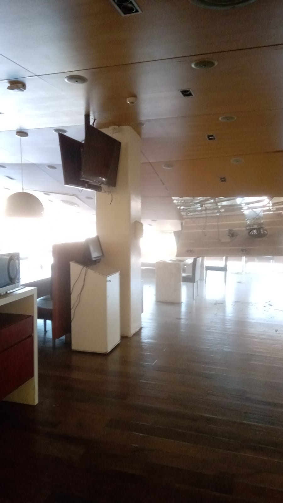 El desplome de una parte del techo fue en el sector del restaurante y la sala de juegos.