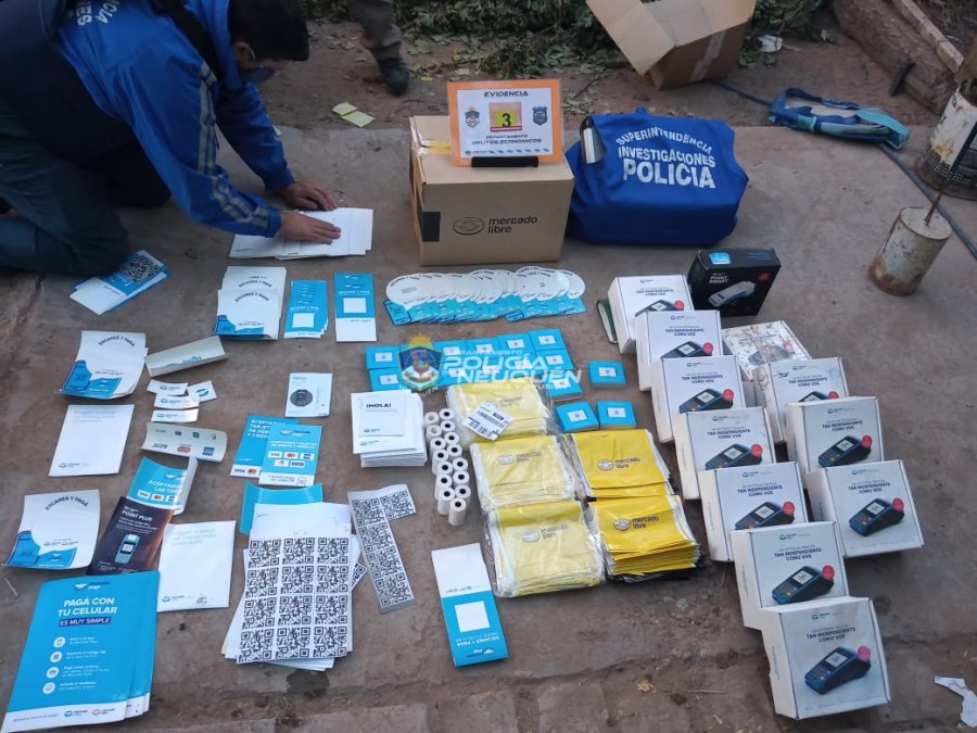 Efectivos del departamento Delitos Económicos y la Despo llevaron a cabo, el pasado viernes, dos allanamientos en el Barrio Villa Ceferino. Durante los operativos se demoraron a dos personas y secuestraron una serie de elementos vinculados a la estafa: Posnets, celulares, tarjetas de crédito, vestimenta con logos oficiales, tarjetas SIM, calcos con QR, folletería, decodificadores, credenciales, notebooks, tablets, rollos de papel y 18.000 mil pesos en moneda nacional.