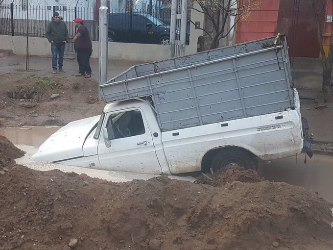 Se hundió una camioneta en un pozo de la obra del Metrobús en Neuquén