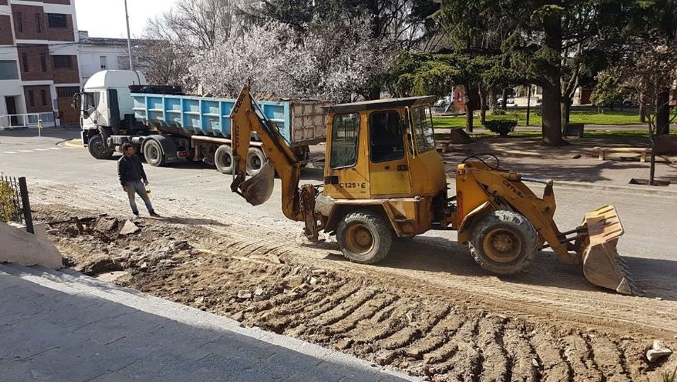 Arrancaron los trabajos preliminares del proyecto de puesta en valor de Centros Urbanos en la calle Comodoro Rivadavia, entre Olivera y 7 Marzo, con el traslado del obrador y materiales. Además se realizó un vallado de la zona y posteriormente los trabajos para la colocación los futuros adoquines.
