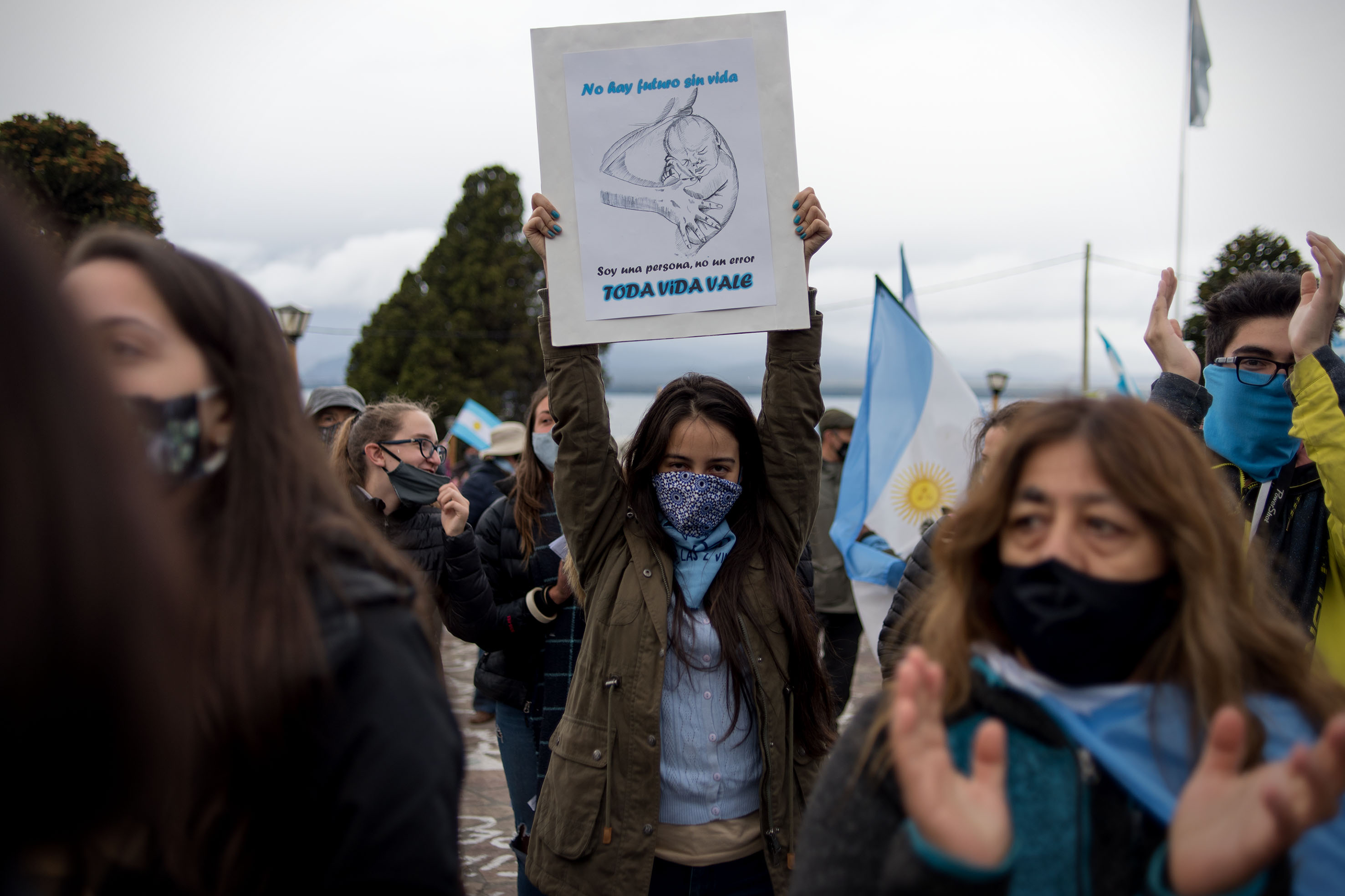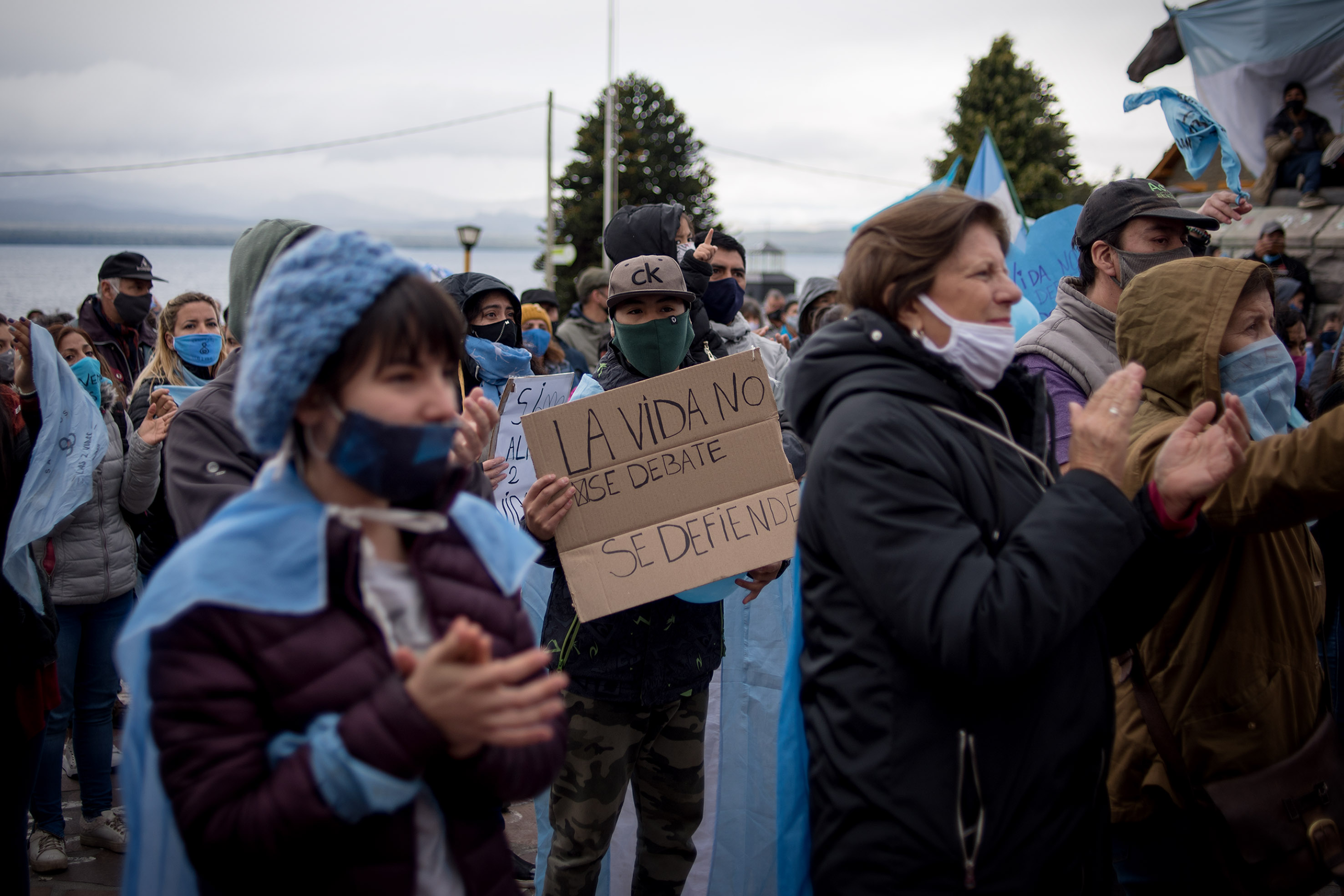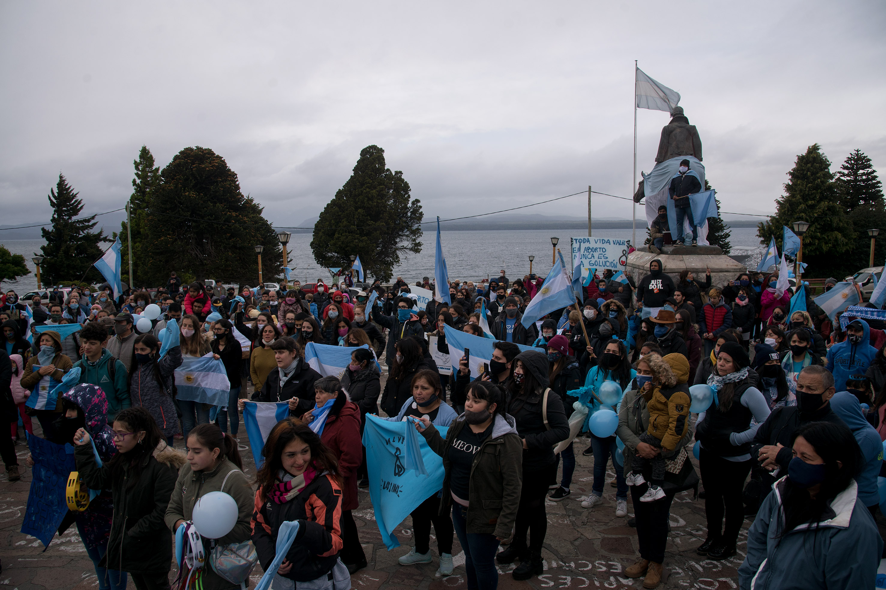 A pesar del frío y de la llovizna que caía este sábado por la tarde sobre Bariloche, cientos de personas participaron de la movilización a favor de las dos vidas y rechazaron el proyecto de ley que garantiza el derecho a abortar.