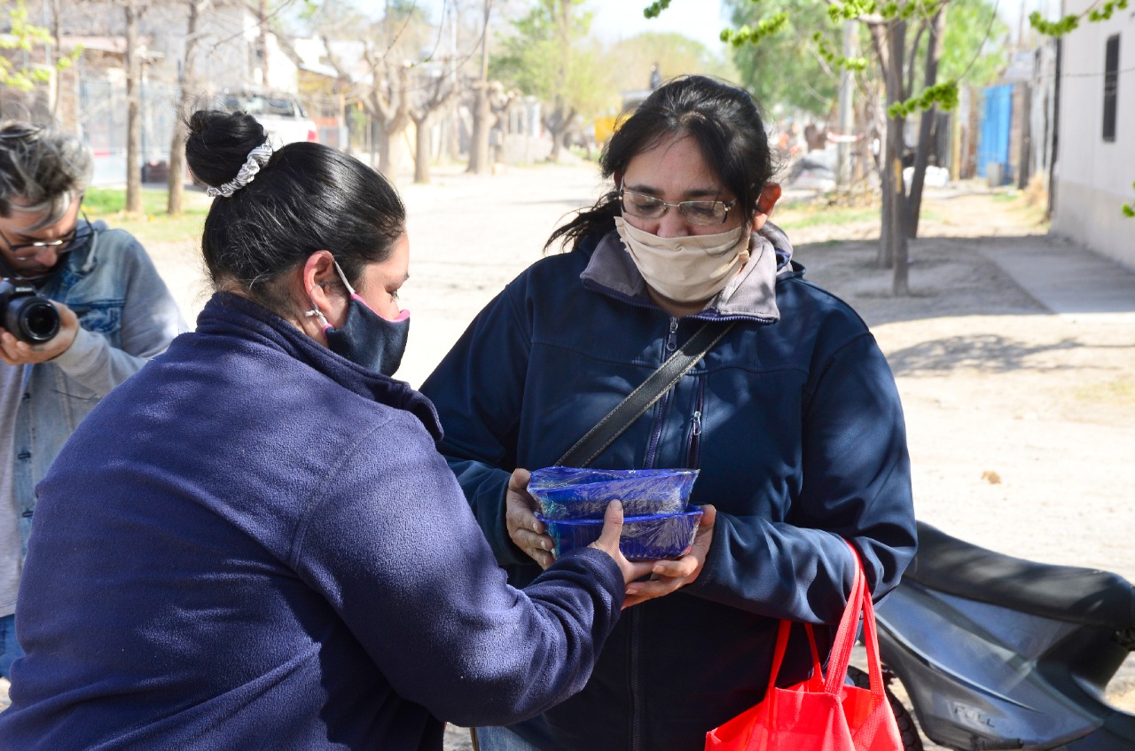 Esta semana autoridades de la Facultad de Alimentos y del municipio reginense realizaron la primera entrega de viandas en el barrio Santa Rita.