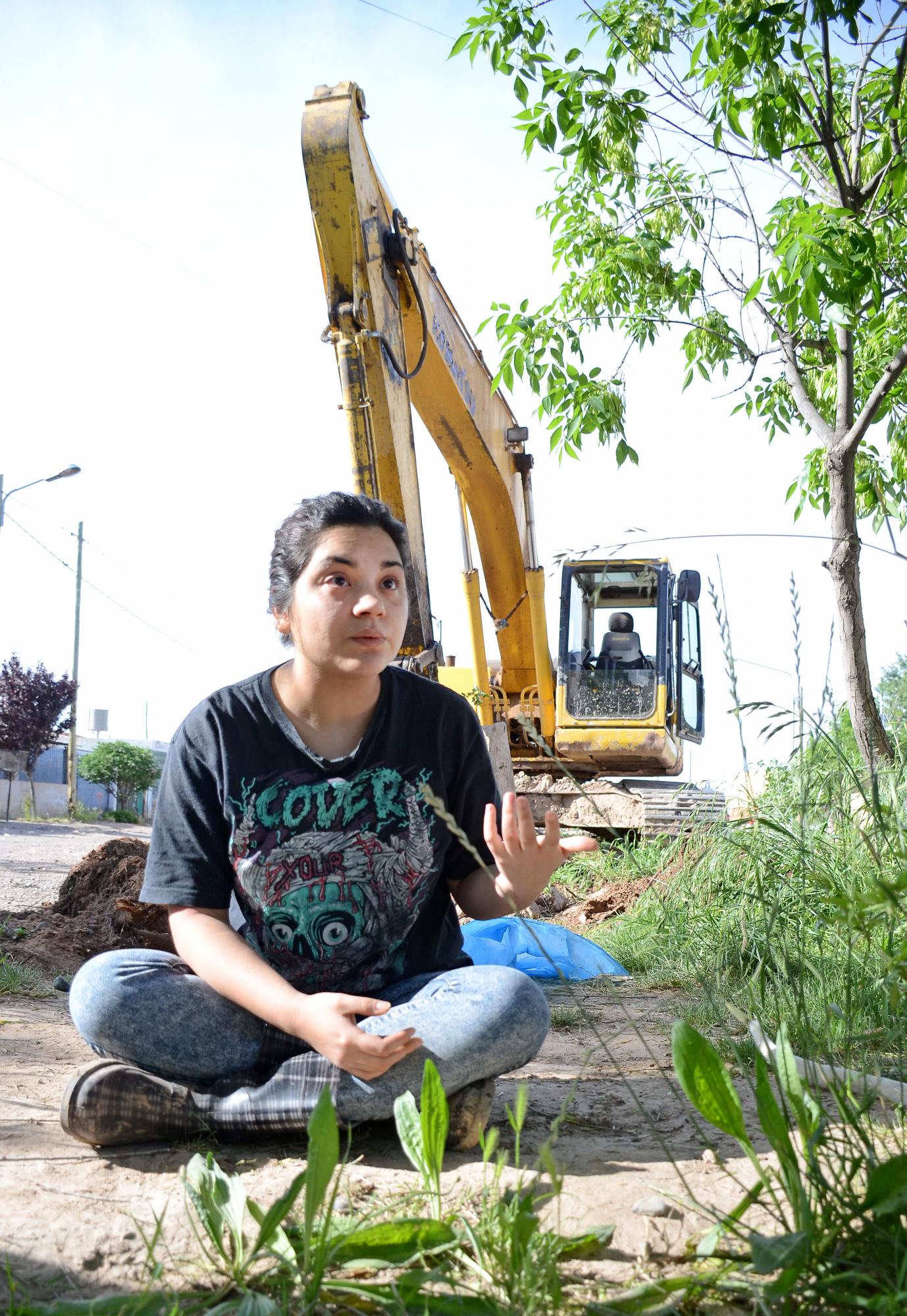 Una joven llamada Melina, de 21 años, se sentó frente a una máquina para impedir que saquen los árboles de su cuadra, en Neuquén.