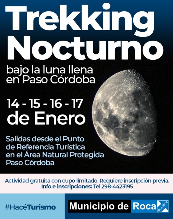 El Municipio de Roca anunció que continuará este verano con el ciclo de Trekkings Nocturnos bajo la Luna Llena en Paso Córdoba.