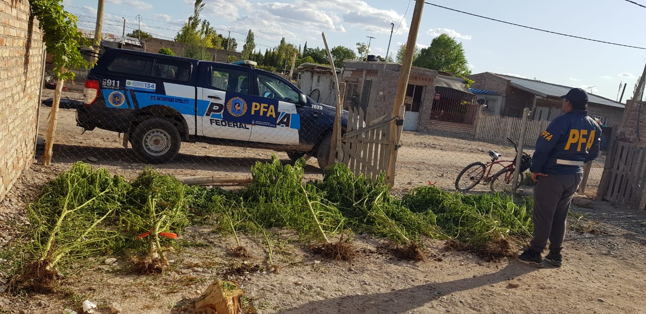 La policía Federal secuestró 20 plantas de marihuana en Allen ayer por la tarde. Según fuentes oficiales el operativo se realizó en una casa ubicada en el barrio Islas Malvinas.