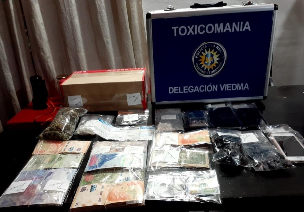 Conforme a estos resultados, se autorizó un allanamiento en una vivienda en Viedma donde se encontró la boca de expendio en modalidad al menudeo. Además, se hallaron envoltorios con cocaína, un frasco con cogollos, 5 plantas de cannabis sativa y más de 165.000 pesos.