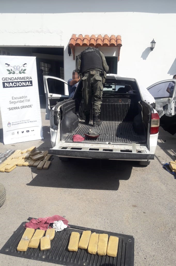 Personal de Gendarmería Nacional secuestró más de 48 kilos de marihuana y 5 kilos de cocaína en los laterales y la compuerta trasera de una camioneta que circulaba desde Buenos Aires a Chubut. El procedimiento se realizó en la localidad de Sierra Grande y el conductor del vehículo quedó detenido.