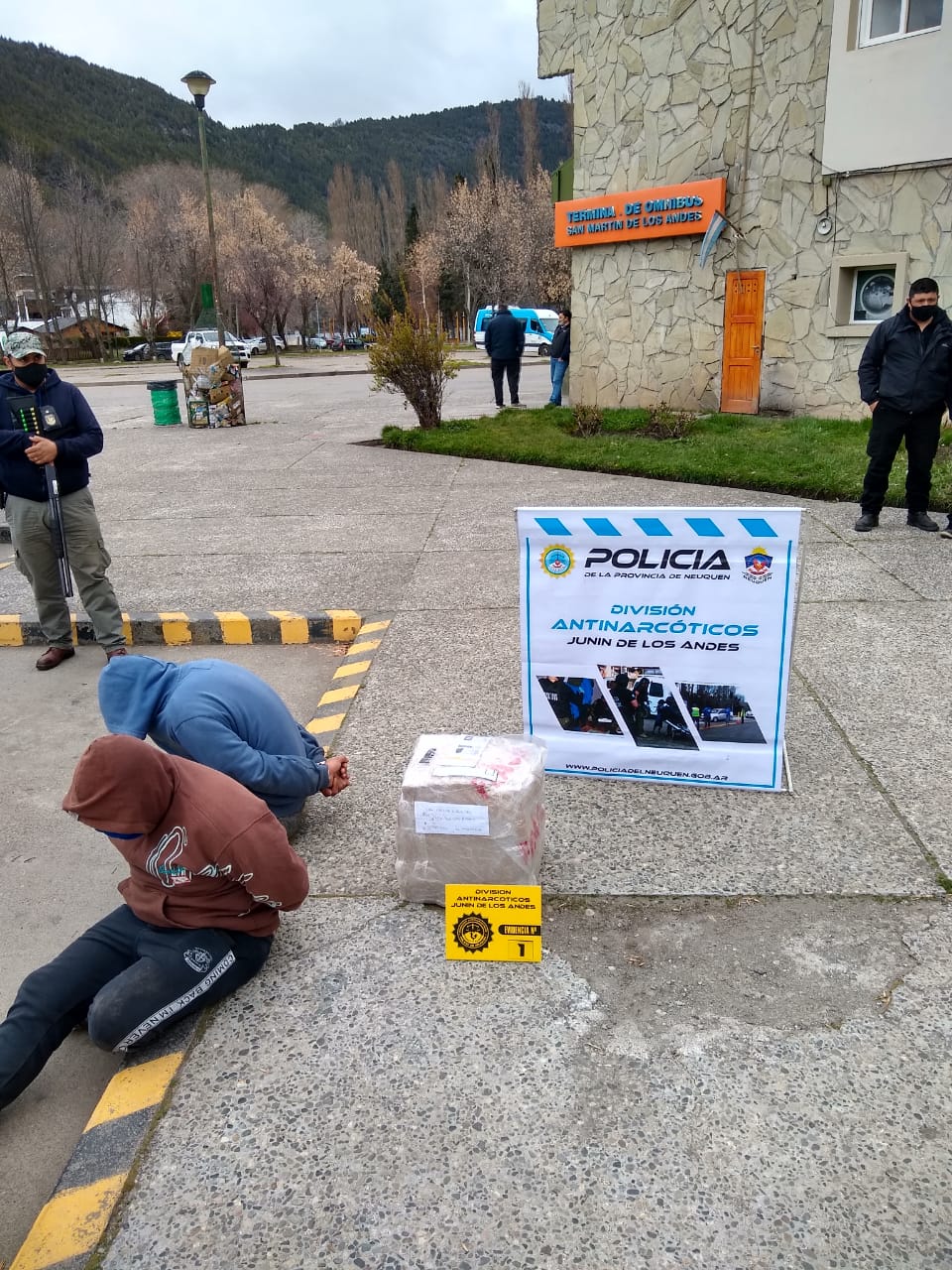 La división Antinarcóticos de Junín de los Andes secuestró en la terminal de San Martín de los Andes una encomienda que contenía seis kilos de cannabis prensada, valuada en unos 720 mil pesos. Fueron demoradas dos personas, quien tenía a su cargo el retiro del paquete y el líder de la banda que controlaba desde un lugar oculto el desarrollo de la operación.