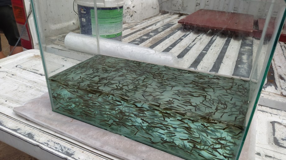Durante la actividad, los referentes de la Mesa, brindaron algunos detalles sobre los métodos que se utilizan para la reproducción de especies, sus características y su desarrollo en el ambiente del río Negro.
