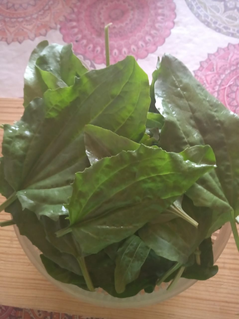 Saltear en una sartén con poco aceite las verduras; Agregarlas hojas del llantén cortadas para tiernizarlas;