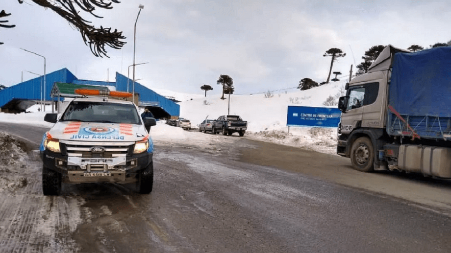 El paso internacional Pino Hachado: Transitable con precaución. Calzada resbaladiza por hielo. Portación obligatoria de cadenas. Equipos operando