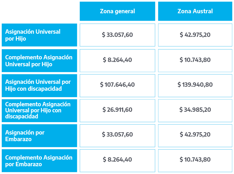 De esta manera, la AUH será de $41.322 y de $53.720 para las provincias patagónicas. Además la Tarjeta Alimentar pasará a ser de $33.000 para familias con un hijo, de $51.750 con dos hijos y de $68.250 con tres hijos.