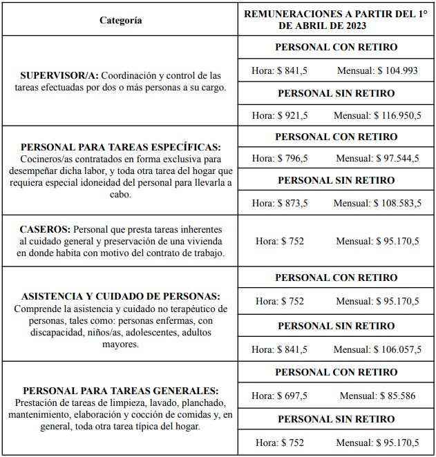 Así, la Resolución 2/23 establece fijar un incremento para las remuneraciones horarias y mensuales mínimas para el personal de casas particulares, que se encuentra comprendido en el Régimen establecido por la Ley N°26844.