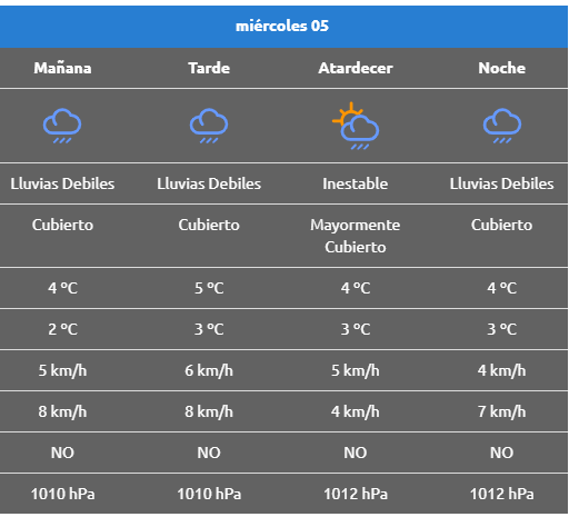 Sobre los horarios, el reporte marcó que -aproximadamente- el alerta rige desde una franja horaria cercana al mediodía de este miércoles y se extenderá este jueves. Sin embargo, el panorama puede cambiar en el transcurso del día. Rige para la zona de Bariloche, Cordillera de Pilcaniyeu y Cordillera de Ñorquincó.