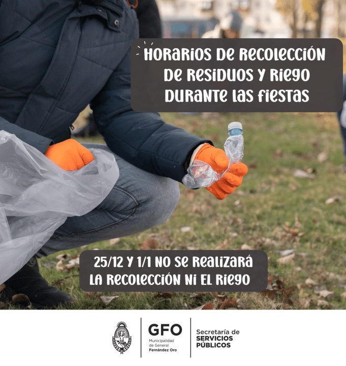 Cada vez falta menos para festejar la Navidad y el Año Nuevo y desde los municipios comenzaron a informar cómo funcionarán los servicios durante estos eventos festivos. En el caso de Fernández Oro, anunciaron qué ocurrirá con la recolección de basura y el riego.