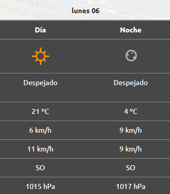 Por la noche la mínima será de 4°C, mientras que el viento cambiará de rumbo hacia el oeste, aunque sin mucha incidencia.