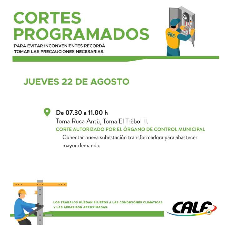 La cooperativa Calf difundió las zonas en las que se realizarán mantenimientos confirmados esta semana.