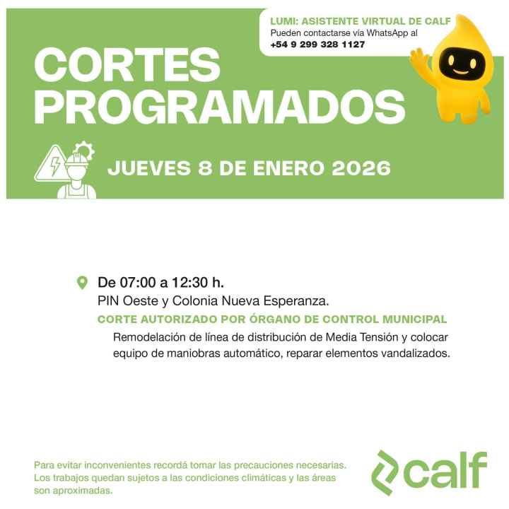Servicio a la comunidad: CALF anunció un corte de luz programado para este jueves 8 de enero
