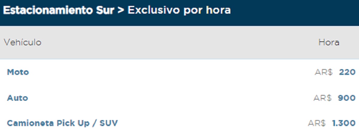 Cuánto sale dejar el auto en el estacionamiento «Sur» de Aeroparque por hora