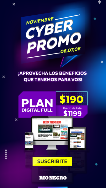 RÍO NEGRO se sumó al CyberMonday con ofertas exclusivas. Del 6 al 8 de noviembre, podrás acceder a contenidos premium con descuentos exclusivos. Mirá.