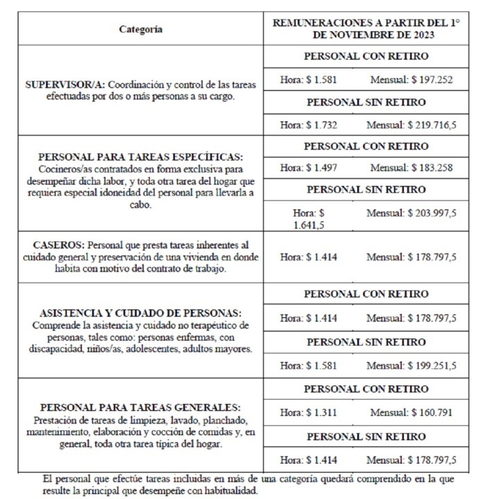 A fines de septiembre, la Comisión Nacional de Trabajo en Casas Particulares cerró una nueva paritaria para las empleadas domésticas que se extenderá hasta fin de año, y en las últimas horas se oficializó para todas las categorías a través de la Resolución 6/2023.