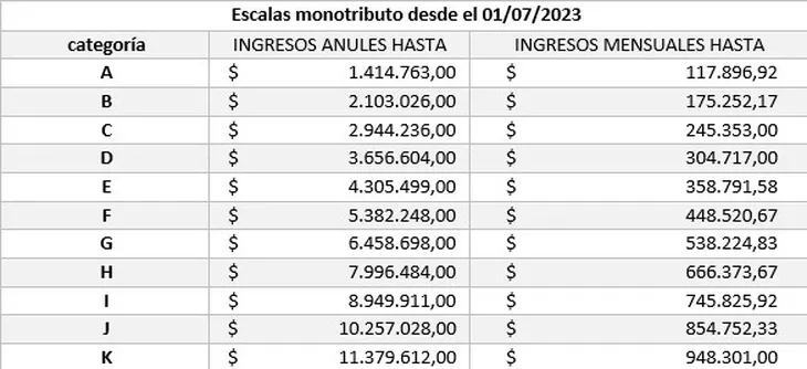 El ente recaudador actualizará este mes los topes de facturación de cada categoría del monotributo. Mirá cómo quedan.